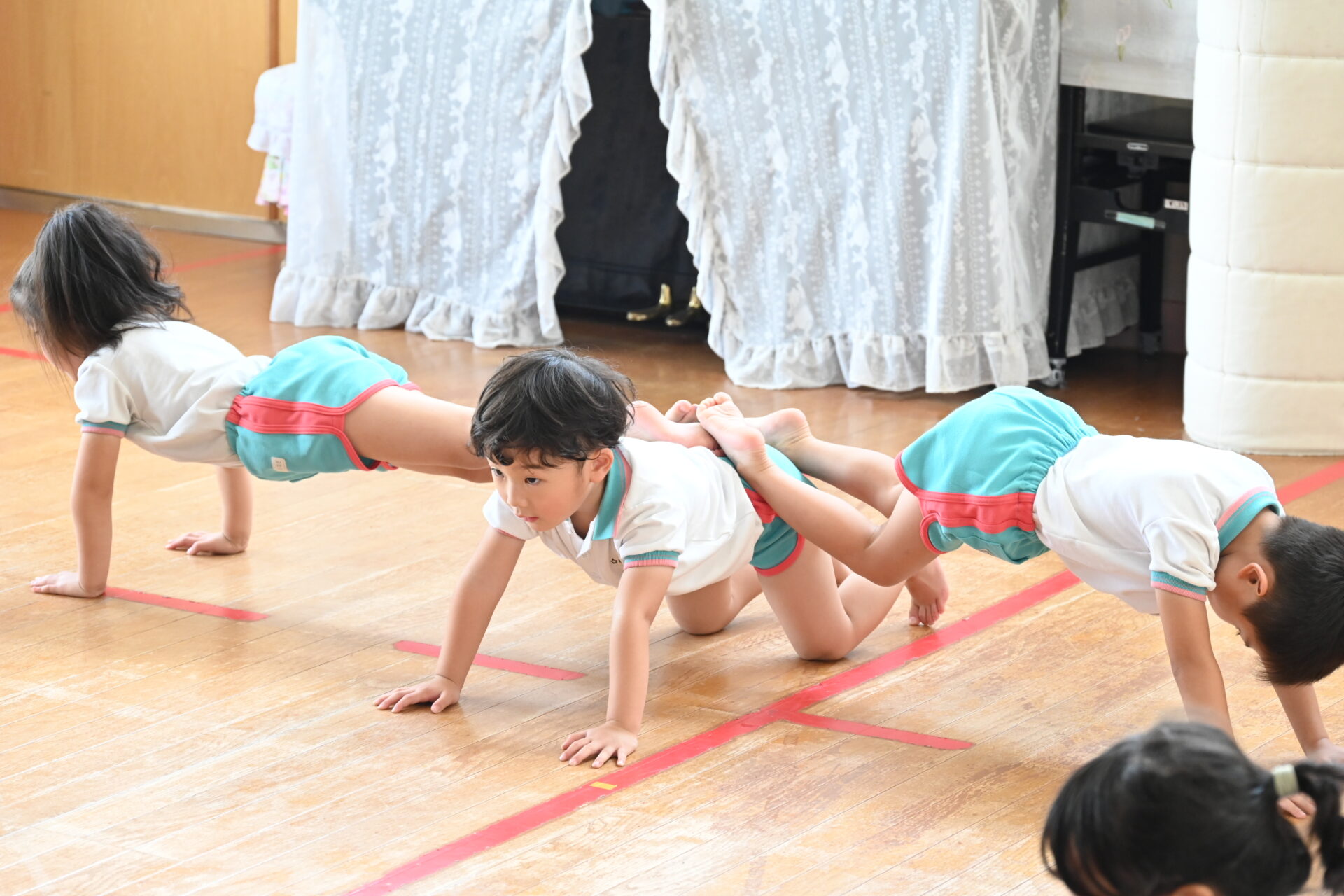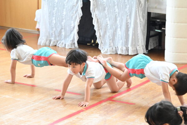 本日は体育教室がありました。10月の運動会に向けて組体操や跳び箱の練習を頑張りました!!